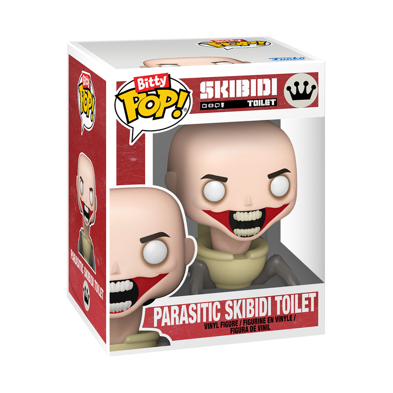 The world of POP! is getting bigger—and smaller—with Bitty POP! collectibles! Expand your Skibidi Toilet collection with the Bitty POP! Bitty Bot Titan Speakerman and Parasitic Skibidi Toilet! Bitty POP! figure is packaged in a hard acrylic display case with a detachable bottom lid. The detachable bottom lid doubles as an acrylic base, to which the Bitty POP! figure is adhered. Remove the Bitty POP! Parasitic Skibidi Toilet from his display case so he can take a seat in the Bitty POP! Bitty Bot Titan Speakerman! Vinyl figures are approximately 0.9 and 5.1 in (2.3 and 13 cm) tall.