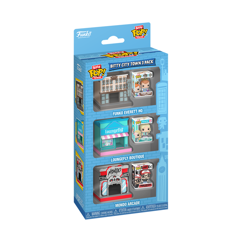 The world of POP! is getting bigger—and smaller—with Bitty POP! collectibles! Expand your Bitty City collection with this exclusive Bitty City Town 3-Pack! This pack includes Bitty POP! Town Freddy Funko as Funko Employee with Funko Everett HQ, Bitty POP! Town Loungefly Employee with Loungefly Boutique, and Bitty POP! Town Mondo Employee with Mondo Arcade.