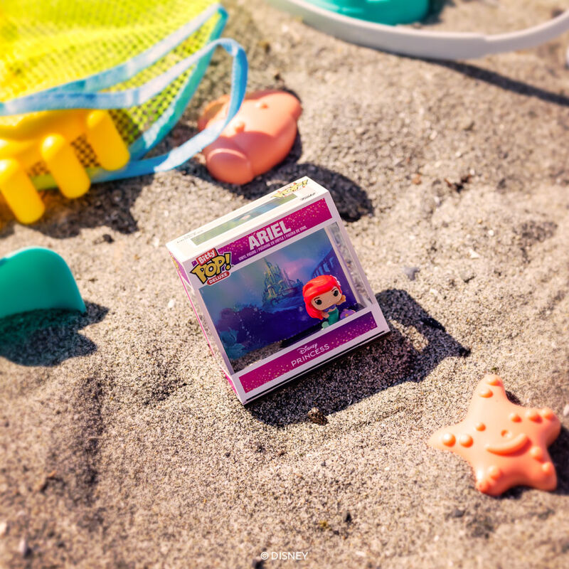 Expand your Disney collection with this exclusive Deluxe Bitty POP! Ariel! Packaged in a hard acrylic display case, this Bitty POP! Ariel stands out against a matching backdrop of Atlantica! The Bitty POP! figure is adhered to an acrylic base that can be removed from the display case. The display case also includes an extra space for you to add another of your favorite Bitty POP! characters to the scene! Mix and match for endless combinations! Vinyl figure is approximately 0.9 in (2.3 cm) tall. Acrylic display case is approximately 2.5” W x 2.4” H x 1.25” D. One figure per single package purchase.