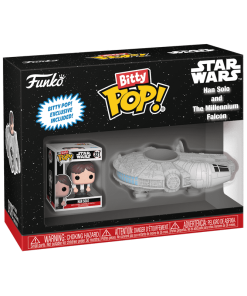 Your favorite Star Wars™ POP! collectibles have been shrunk into Bitty POP! collectibles Expand your collection with Bitty POP! Ride Han Solo™ with the Millennium Falcon™!
