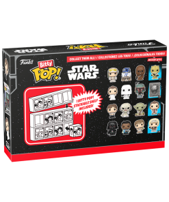 The world of POP! is getting bigger—and smaller—with Bitty POP! collectibles! Expand your Star Wars™ collection with this assortment of Bitty POP! collectibles featuring the most stellar characters in the galaxy! This 4-pack includes Bitty POP! Princess Leia™, Bitty POP! Snowtrooper™, Bitty POP! Boba Fett™, and a mystery Bitty POP! figure. The possible mystery Bitty POP! collectibles are Hyper Rare (1/6) Han Solo™ in Carbonite, Hyper Rare (1/6) Bossk™, Rare (1/3) Princess Leia™ (Bespin™), and Rare (1/3) Han Solo™ (Hoth™).