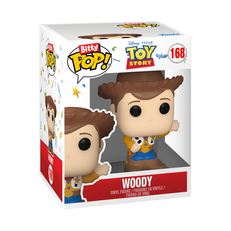 The world of POP! is getting bigger—and smaller—with Bitty POP! collectibles! Expand your Disney Pixar Toy Story collection with this 2-pack featuring Bitty POP! Woody and Bitty POP! Buzz Lightyear! Bitty POP! figures are packaged in hard acrylic cases with detachable bottom lids. The detachable bottom lids double as acrylic bases, to which the Bitty POP! figures are adhered. Vinyl figures are approximately 0.9 in (2.3 cm) tall.