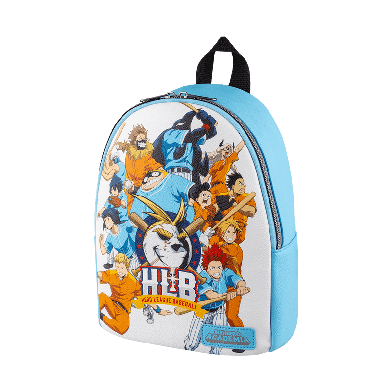 The Funko My Hero Academia Hero League Baseball Mini Backpack is made of vegan leather (polyurethane). Bag has adjustable shoulder straps and antique silver-colored metal hardware. Additional features include printed details.