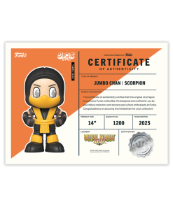 Jumbo Chan Scorpion has scaled to new heights as this premium vinyl collectible, making a larger-than-life statement piece for your Mortal Kombat collection.