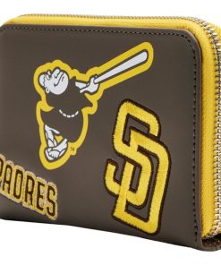 Show your team spirit with an accessory that will knock your Loungefly collection out of the park! The MLB SD Padres Patches Zip Around Wallet is a home run for any Padres fan. This wallet features sporty embroidered patches against a black background. With 4 slots for holding cards and a clear slot to hold your ID, this accessory provides a stylish way to carry your important items as you cheer from the sidelines.