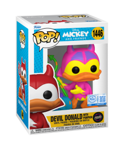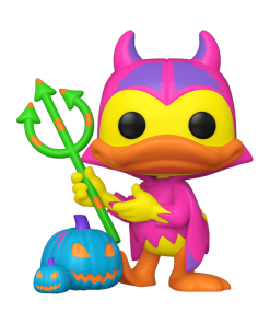 “Boy, oh boy!” Enjoy a night of trick-or-treating and jack-o-lantern carving alongside this exclusive POP! Devil Donald with Pumpkin! Wearing his classic Halloween costume, complete with a pitchfork and cape, POP! Donald Duck is ready to celebrate with his friends in your Disney collection. There’s a 1 in 6 chance you may find the black light chase of POP! Devil Donald with Pumpkins. Vinyl figure is approximately 3.5 in (8.9 cm) tall.
