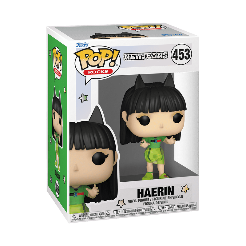K-pop sensation NewJeans has arrived to take the stage in your POP! Rocks collection! Reunite POP! HAERIN with the rest of the group in your music set as she rocks her outfit from the hit song “New Jeans” Vinyl figure is approximately 4.2 in (10.7 cm) tall.