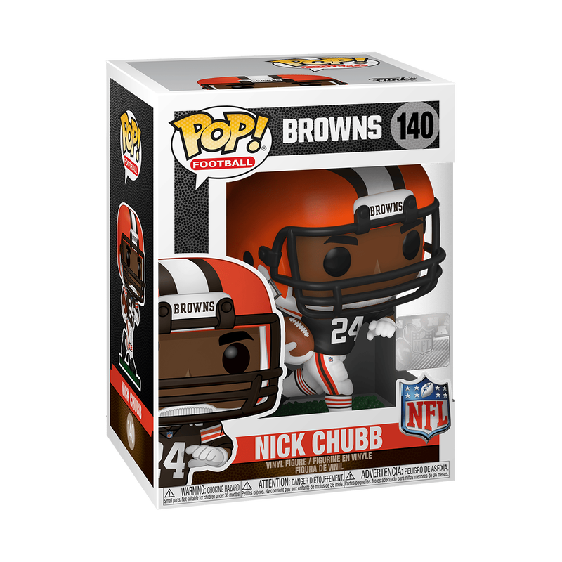 Draft Nick Chubb, running back for the Cleveland Browns, into your NFL Pop! collection. Vinyl figure is approximately 4.15 in (10.5 cm) tall.