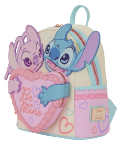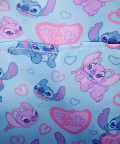 This Disney Lilo & Stitch mini backpack is ready to be your go-to for Valentine’s Day. You’ll find Stitch and Angel on the front. They hug the heart-shaped front pocket that looks like a cake that says “Be Mine.” You’ll find puff print hearts on the front and side, and debossed hearts on the rest of the bag. Plus, you’ll find hearts on one of the straps!